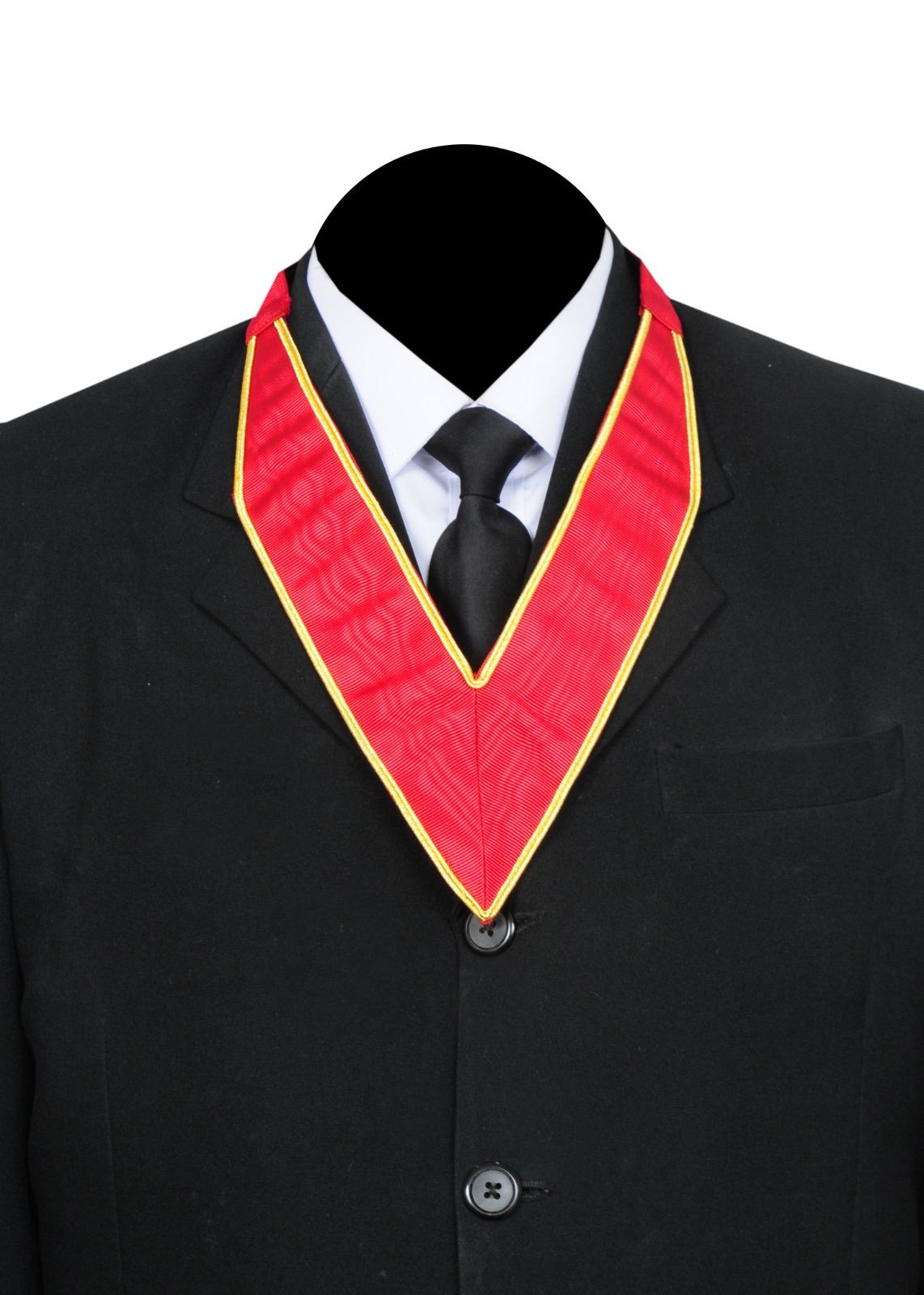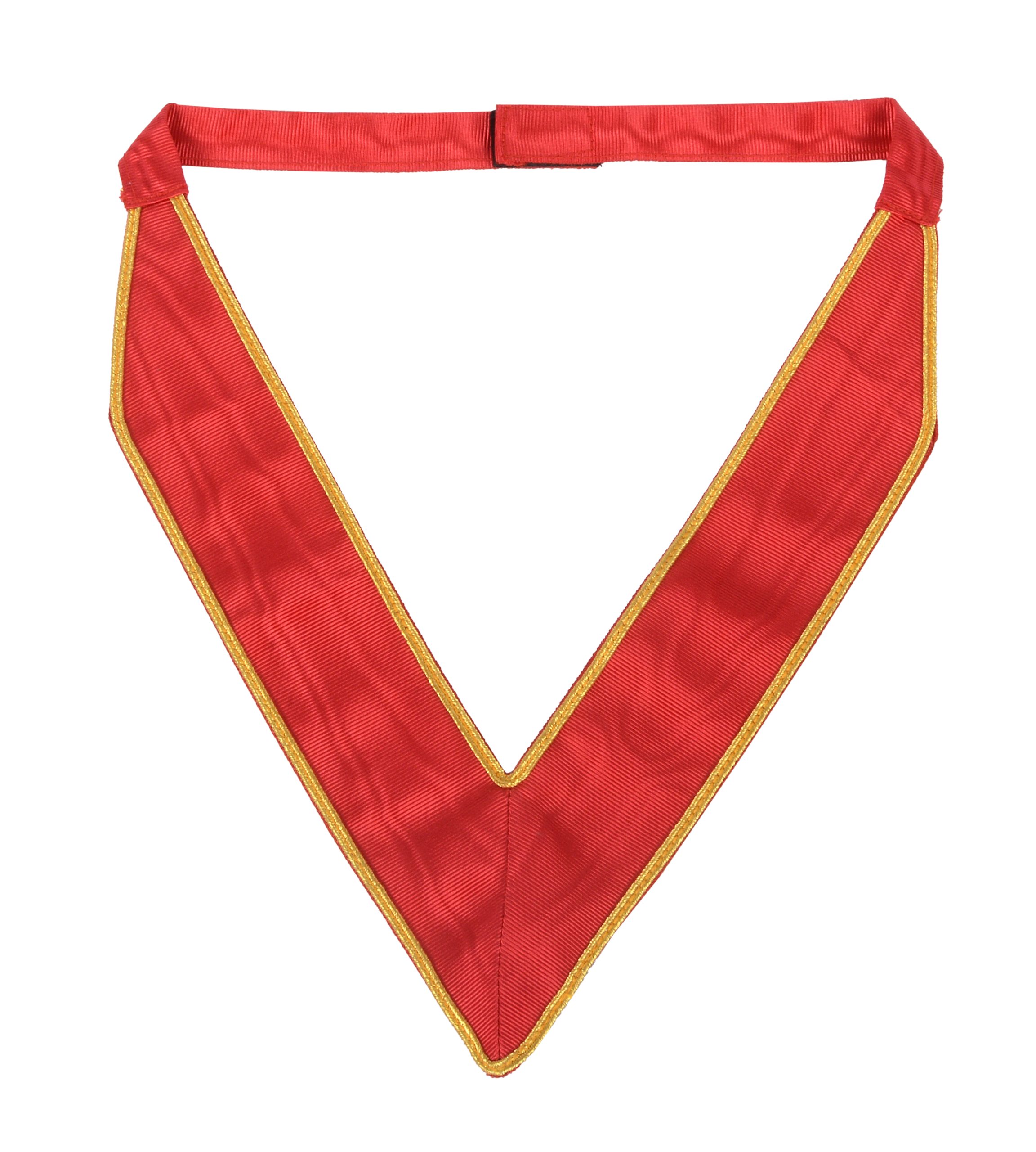 The Rose Croix 32nd degree collarette is expertly handcrafted using the finest quality materials. It features red moire watermarked masonic ribbon, delicate golden braid, a self-locking swivel hook, and a velcro fastener at the rear for easy wear. The 32nd degree collarette jewel is also available separately.