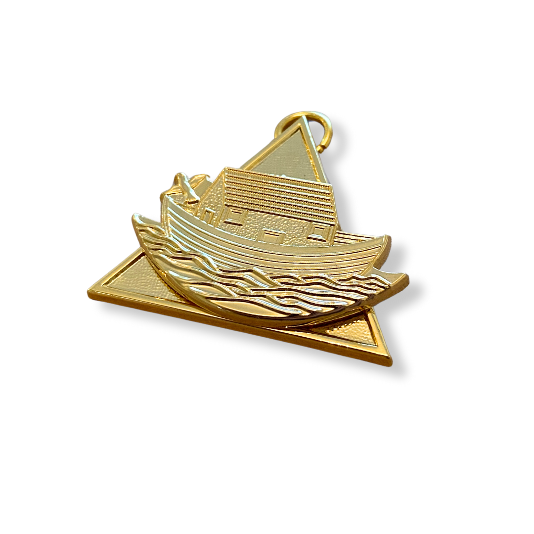The Royal Ark Mariner Grand Master’s PCN Breast Jewel is a finely crafted piece, showcasing Masonic tradition with elegance. It features a gilt-plated pendant, a multi-colored ribbon, and a convenient stickpin attachment at the back. Perfect for those who value both heritage and style.